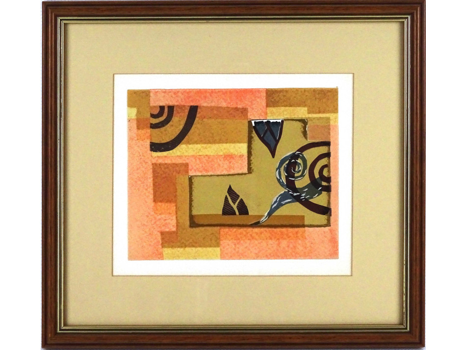 Művészi grafika, papír kollázs kép, paszpartuzva, üveglap mögött, Hibátlan állapotú barna fakeretben.