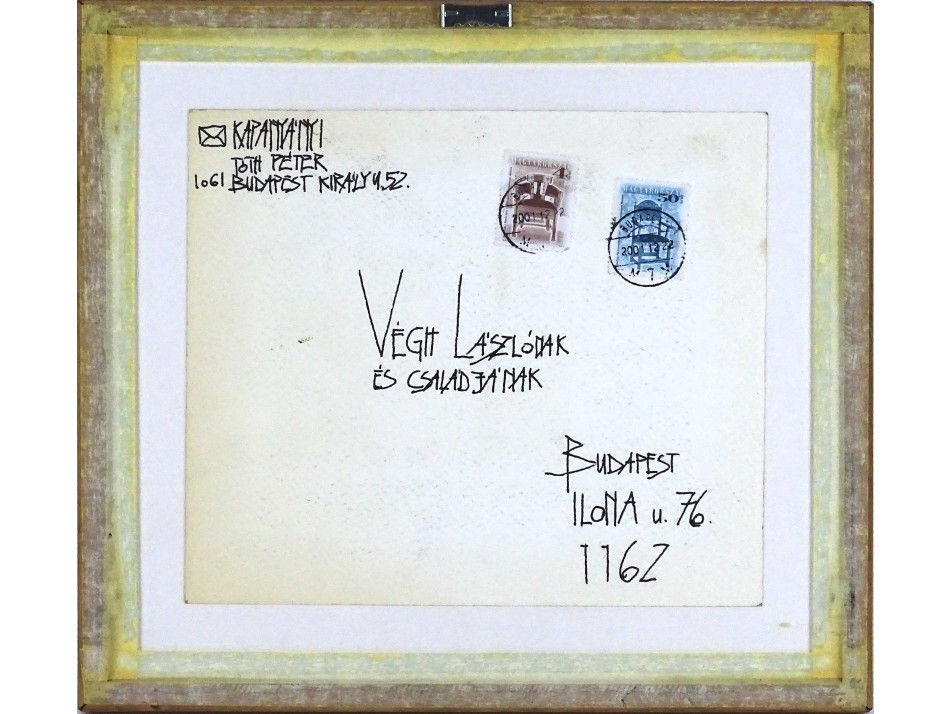 Hátoldalán levélcímzés szerű jelzés és ajándékozási felirat: