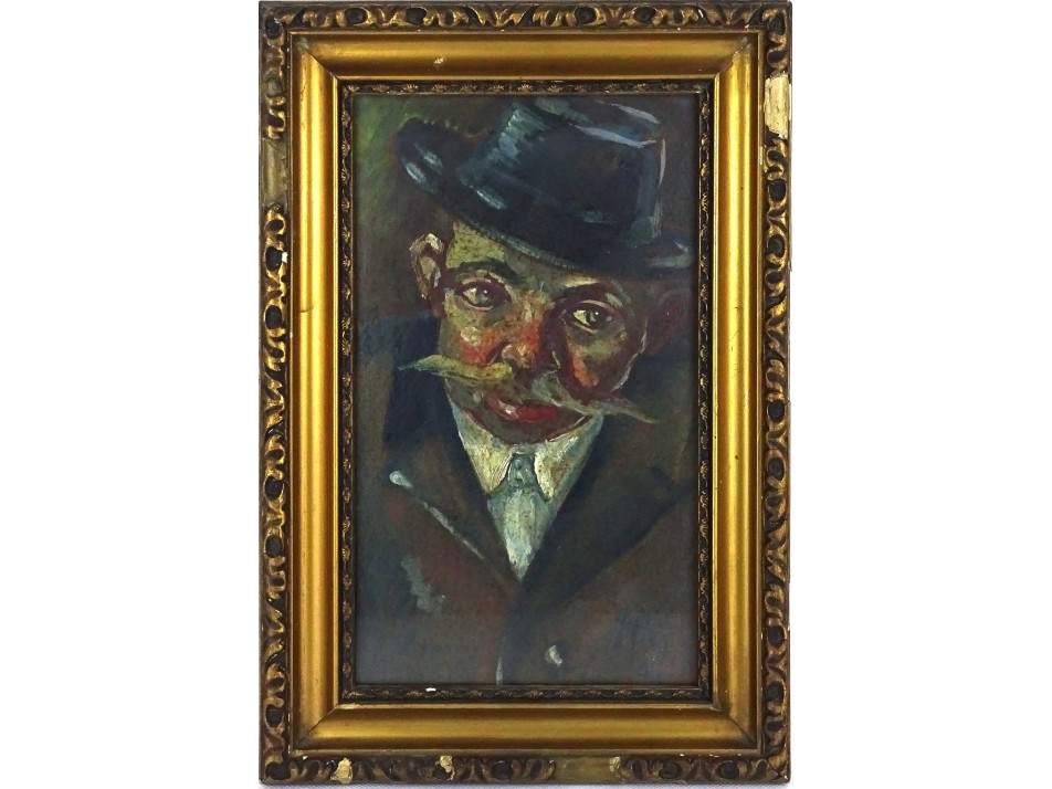 Főoldal » Festmény » Téma » Portré » Magyar festő xx. század első fele, jelzett : Régi bajszos férfi portré 28 x 17 cm