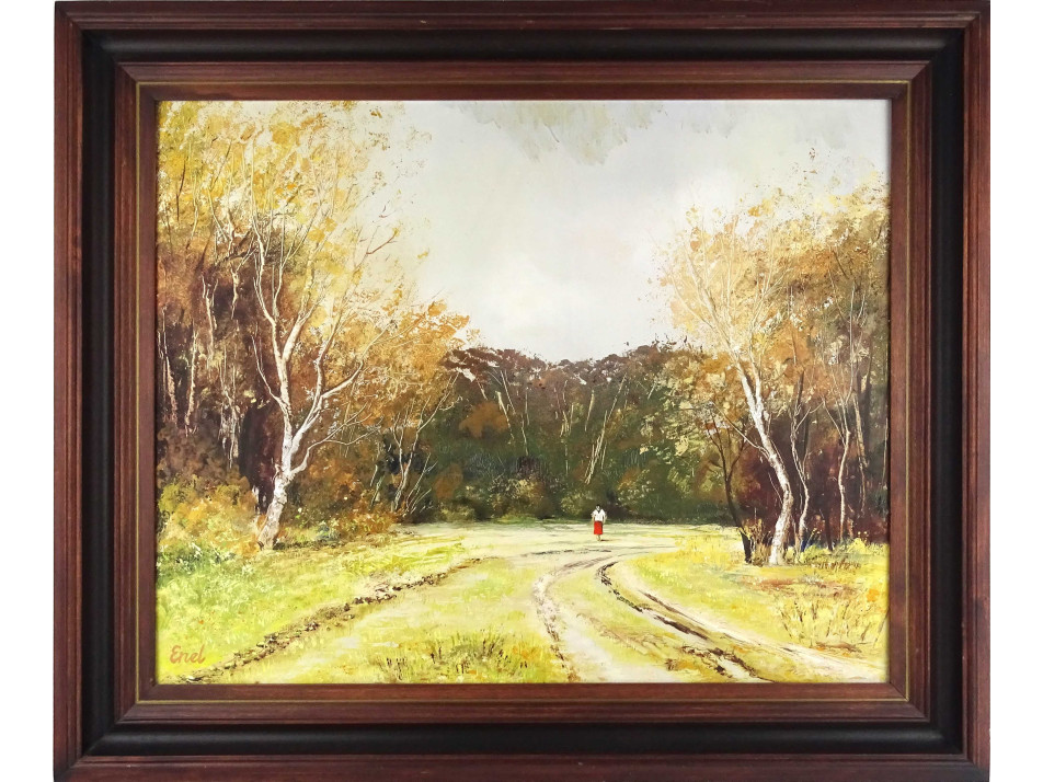 Olaj farost festmény, hibátlan állapotú barna fa keretben.