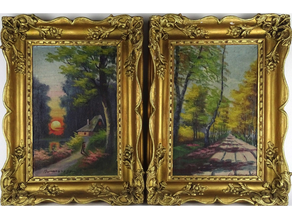 Olaj vászon festmény, tájkép pár, arany színű blondel keretben. Akasztási lehetőséggel rendelkeznek.
