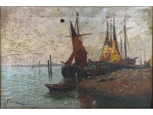 Régi keretezett mediterrán táj reprodukció 25 x 30.5 cm