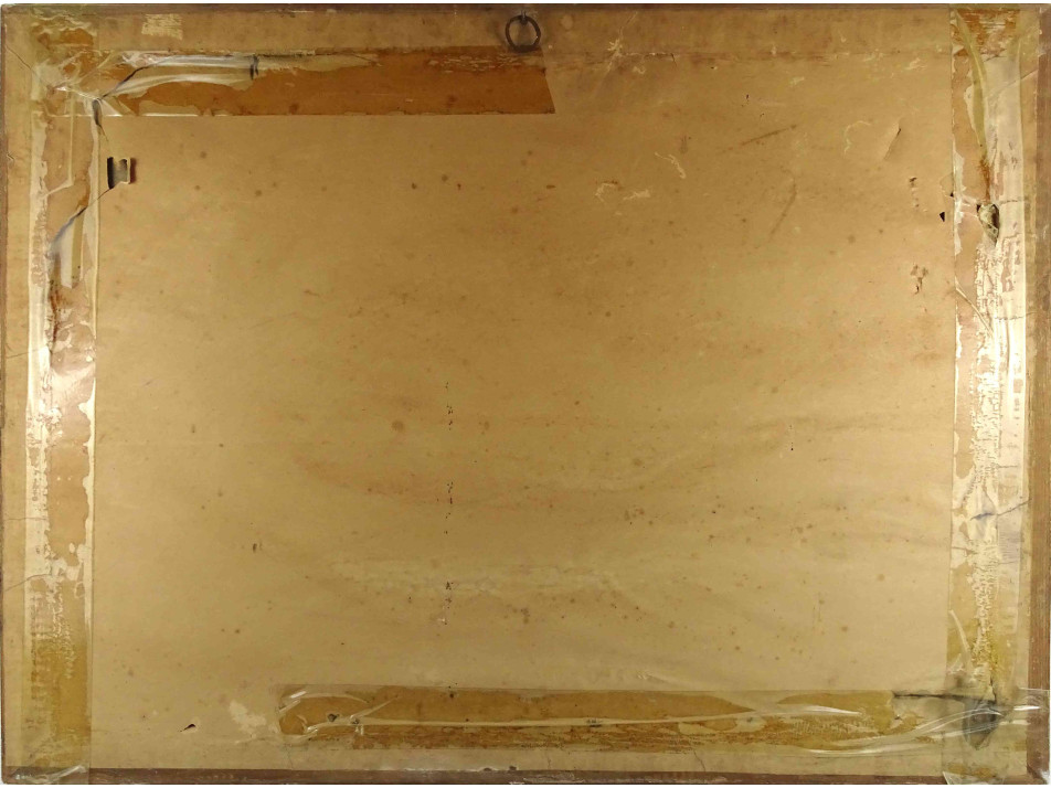 Olaj karton festmény, régi szép állapotú aranyozott keretben. Akasztási lehetőséggel rendelkezik. A kereten néhány sérülés látható.