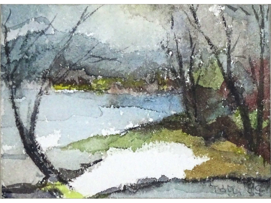 Tóth jelzéssel: Téli táj - kisméretű akvarell tájkép