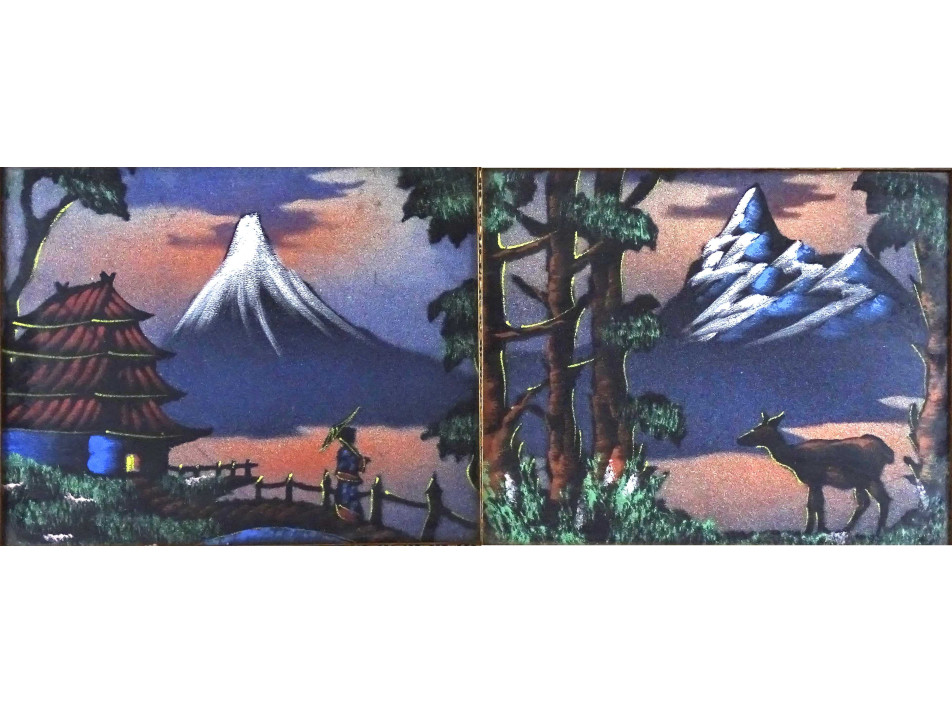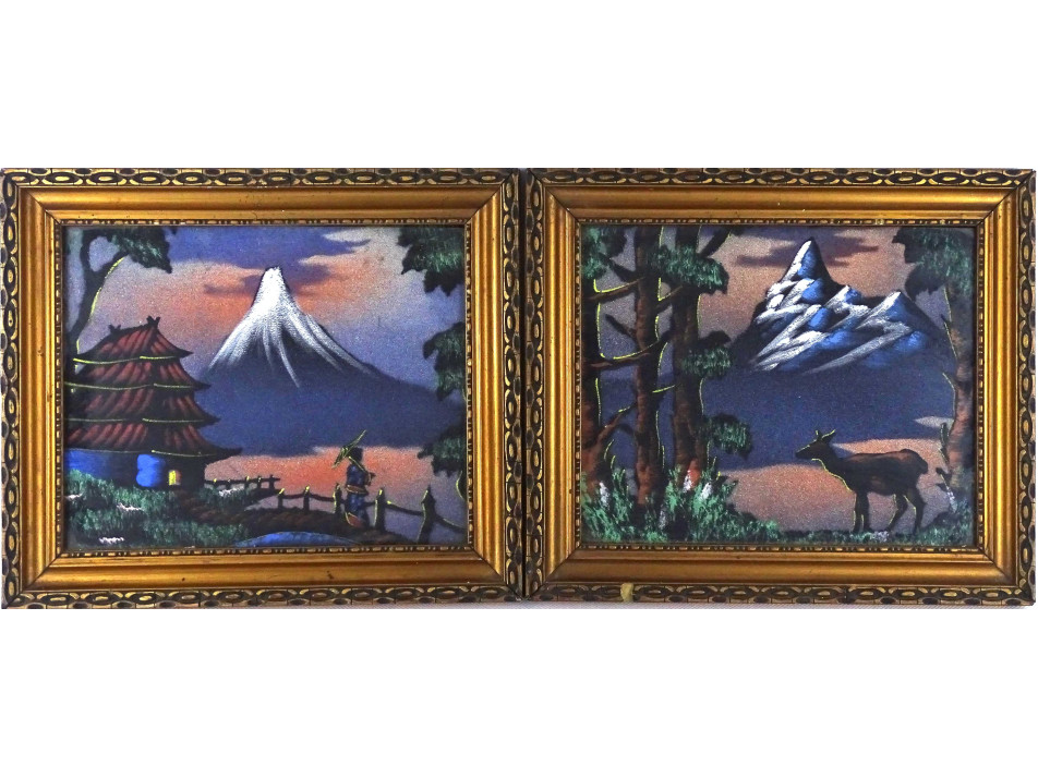 Keleti tájkép selyemkép pár 29 x 24 cm