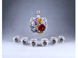 Hat személyes Kalocsai mintás porcelán pálinkás készlet