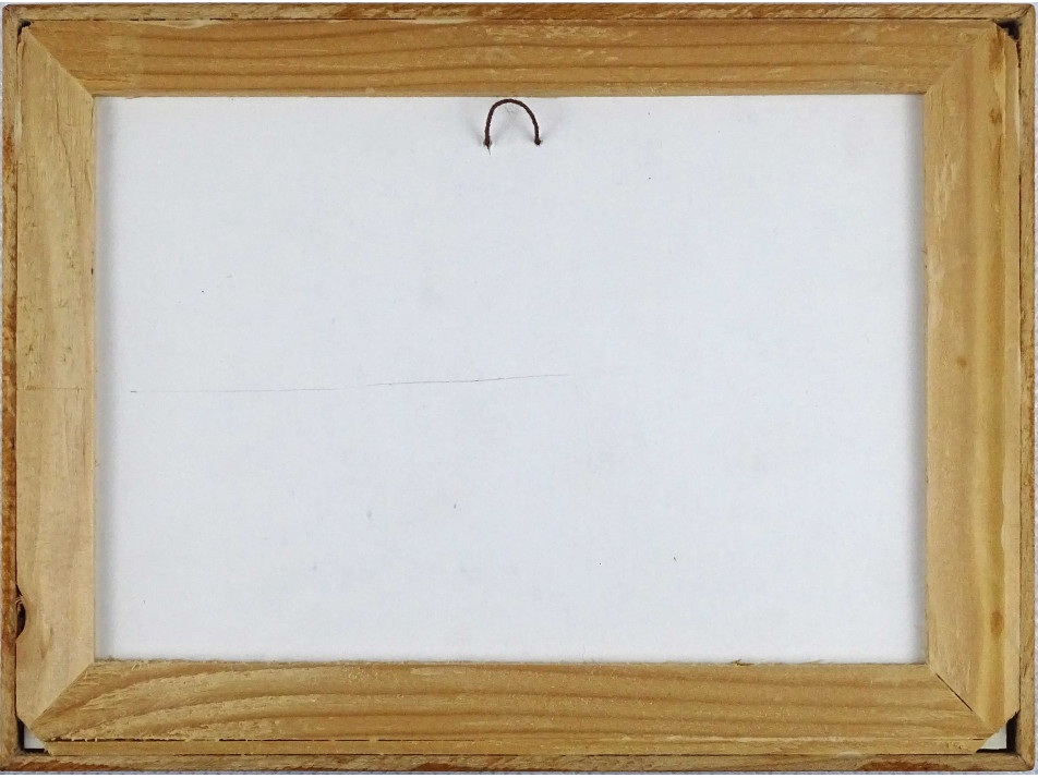 Kisméretű papír akvarell téli tájkép, barna paszpartuban, üveglap mögött, vékony léckeretben.