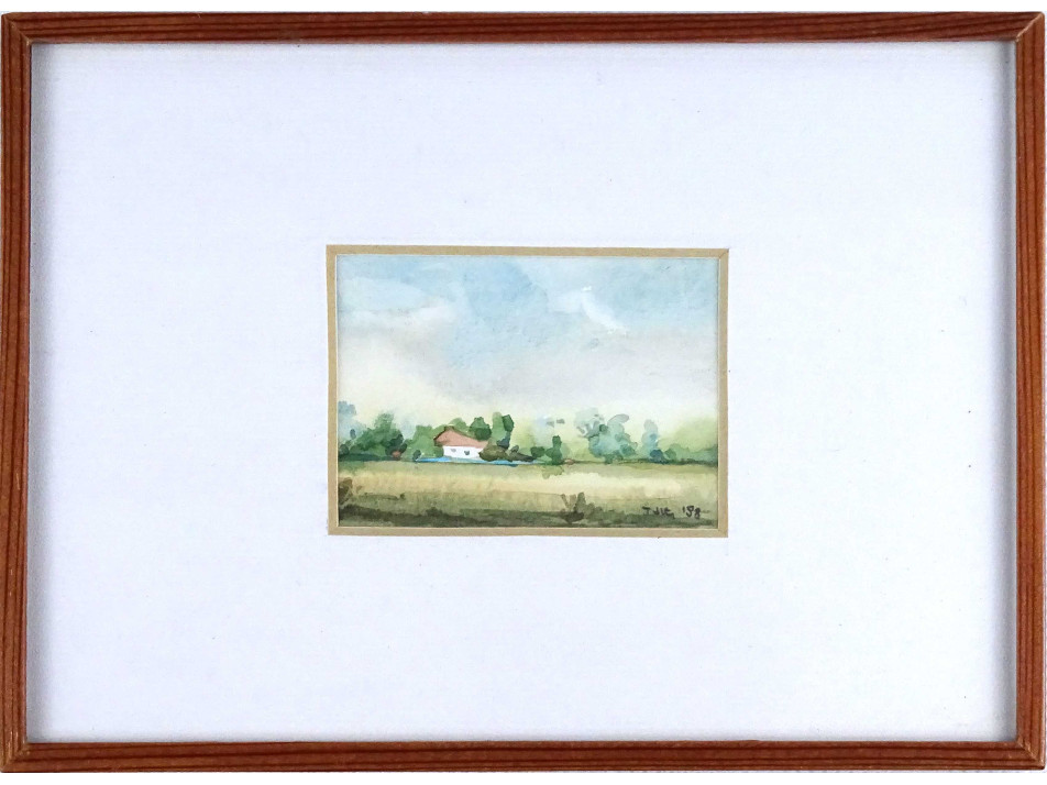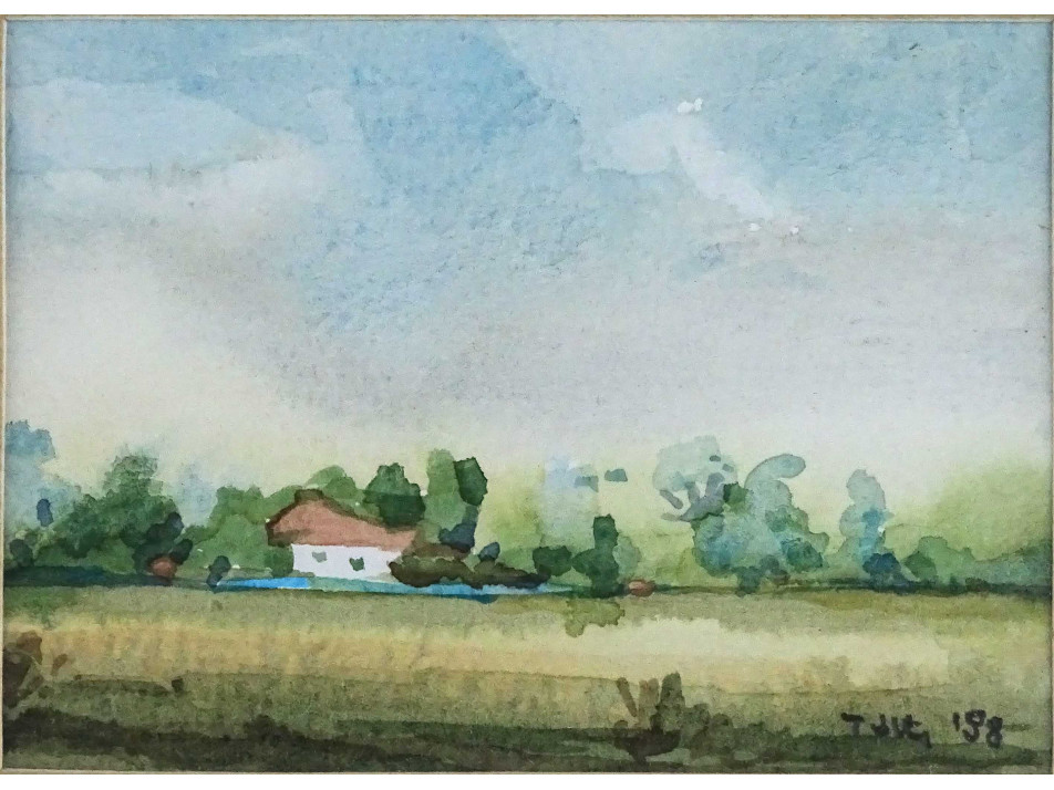 Tóth jelzéssel: Alföldi tanya - kisméretű akvarell tájkép