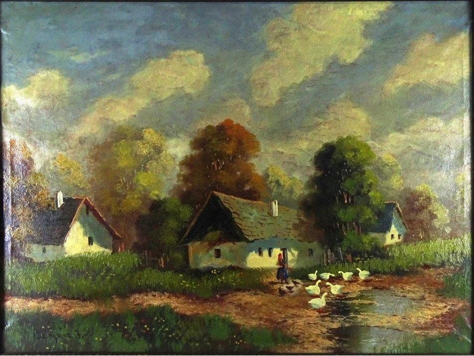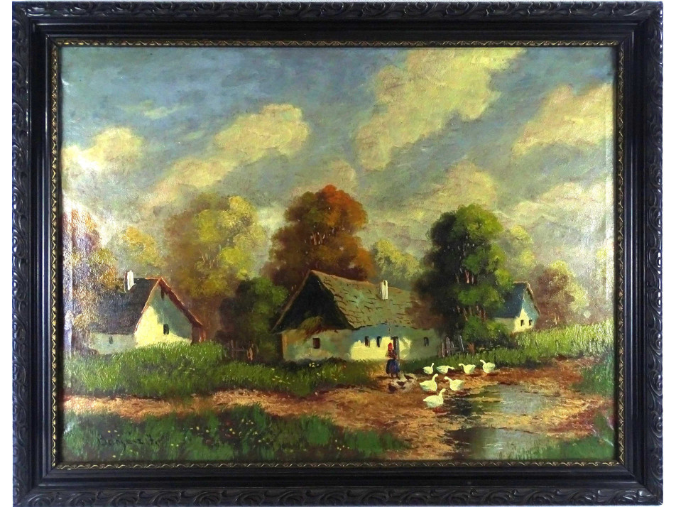 Olaj vászon festmény, régi szép állapotú díszes fekete keretben. Akasztási lehetőséggel rendelkezik.