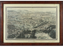 Papír fametszet, üveglap mögött, keskeny fekete keretben.