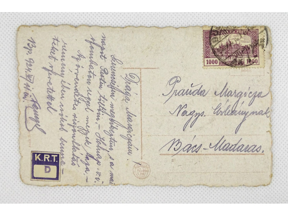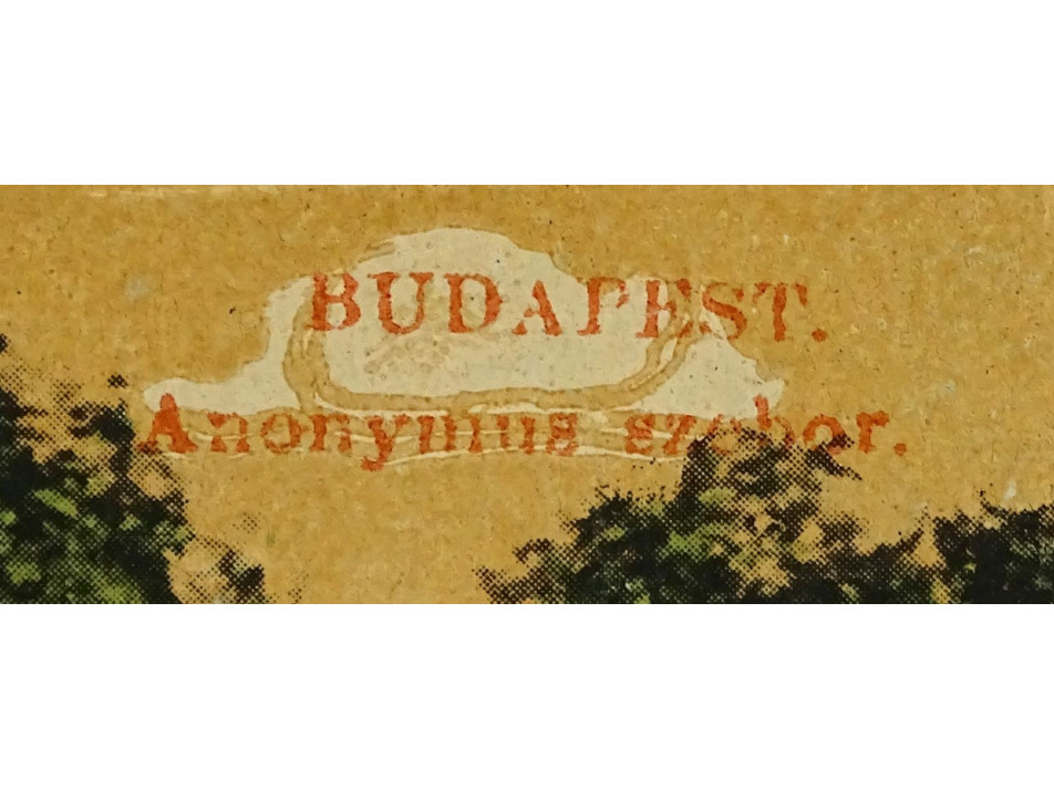 Régi, szép állapotú, színes képeslap, melyen a budapesti Anonymus szobor látható.