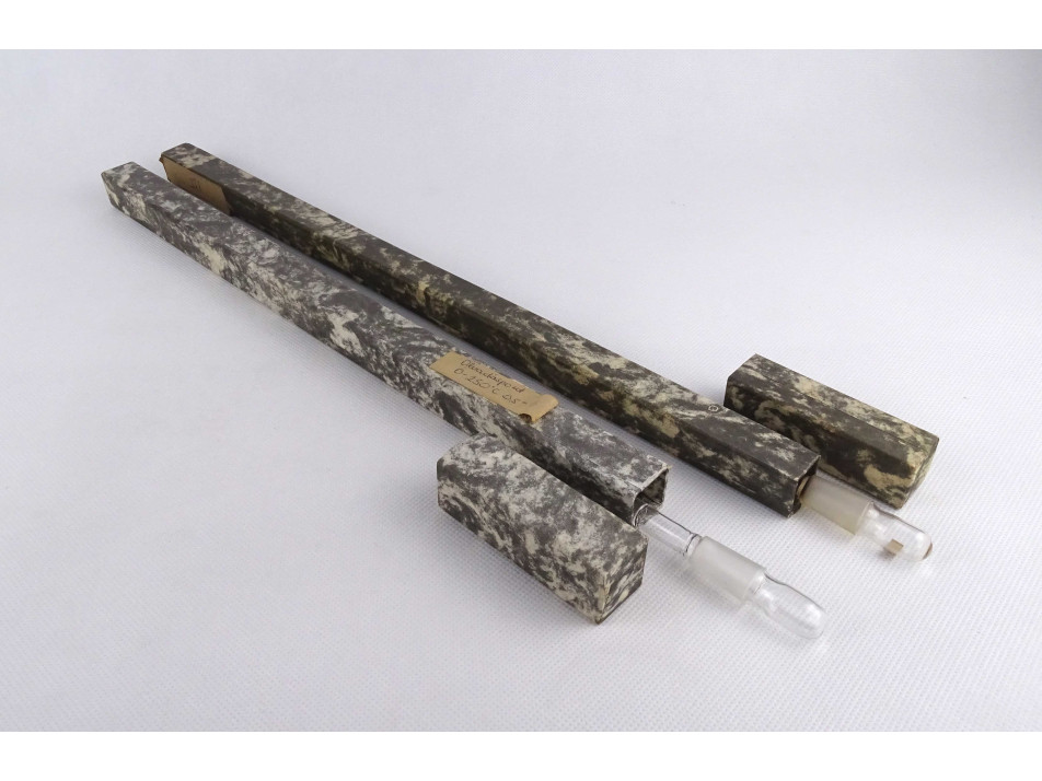 Régi nagyméretű laboratóriumi hőmérő eredeti tokjában 2 darab