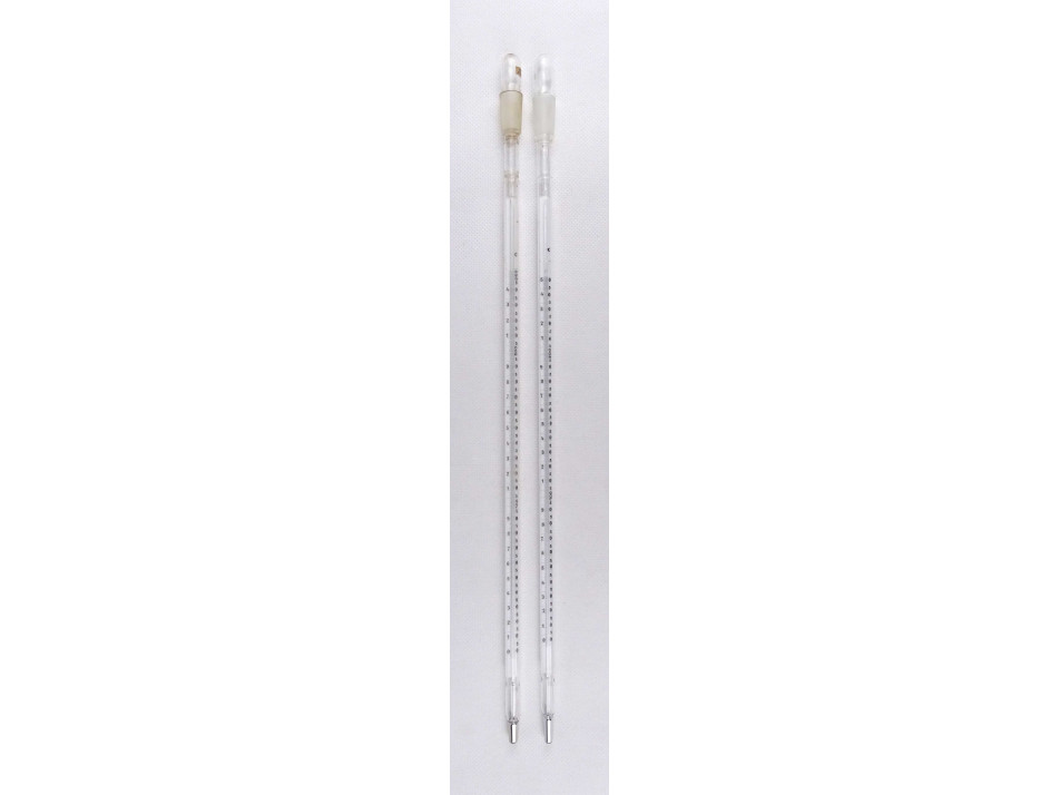 Két darab, régi, eredeti dobozában található, hibátlan állapotú nagyméretű, laboratóriumi hőmérő, labor felszerelés.