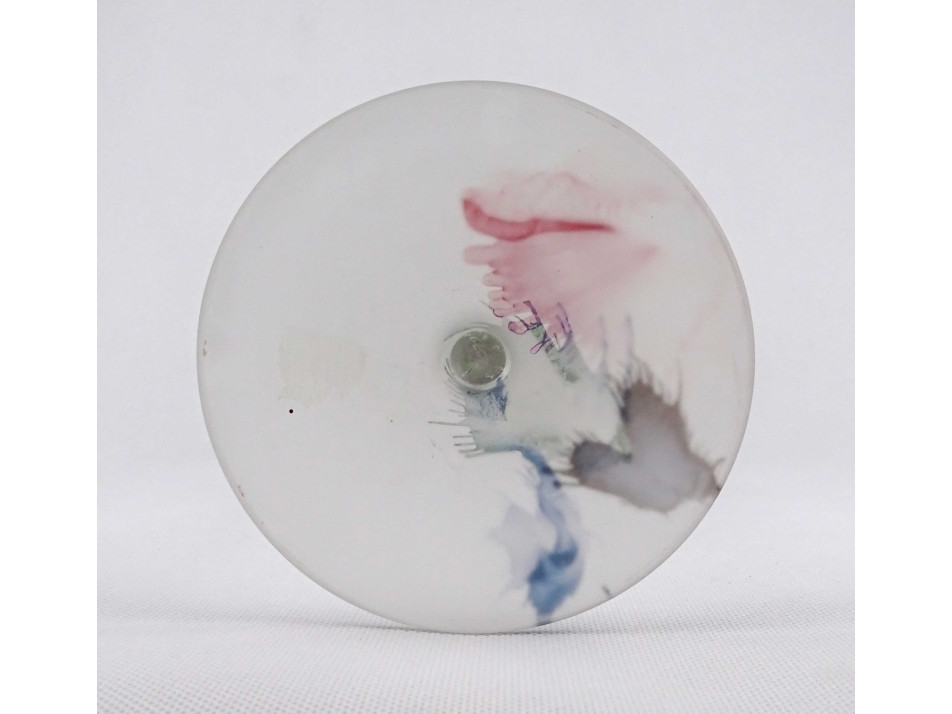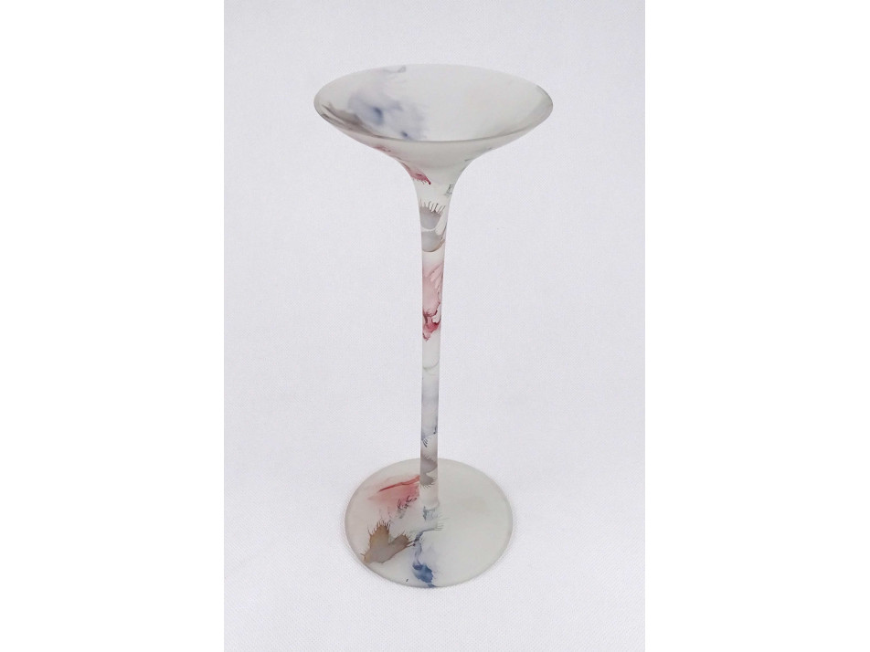 Hibátlan állapotú, nagyméretű, festett, opálüveg design talpas gyertyatartó kehely.