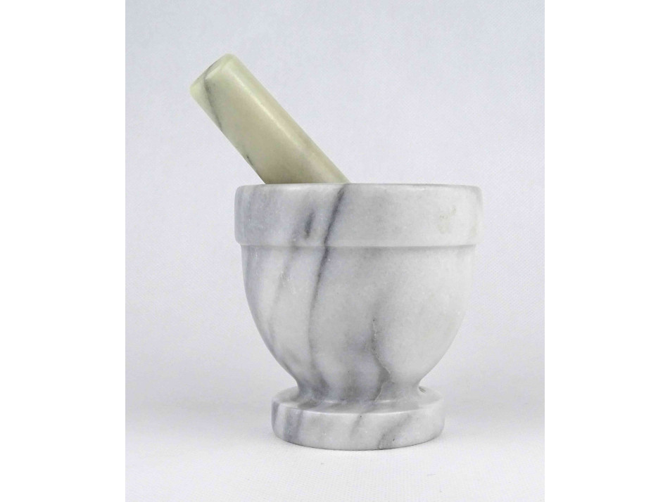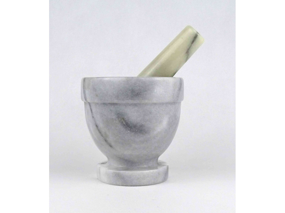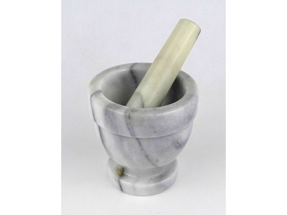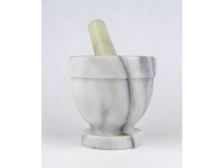 Régi, hibátlan állapotú, vastagfalú márvány mozsár törővel. Dísznek és használatra egyaránt alkalmas.