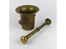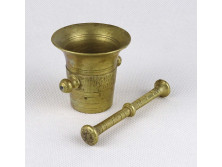 Néprajzi gyűjteménybe illő kovácsoltvas pánttal erősített fából készült nagyméretű mozsár, antik háztartási eszköz, eredeti nagyméretű kovácsoltvas törővel.