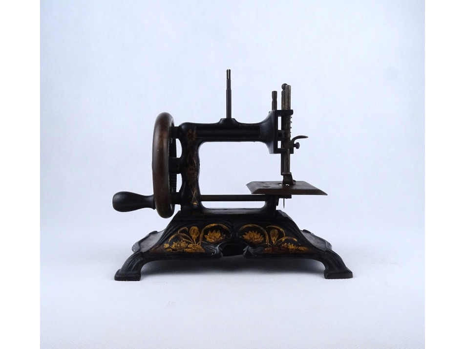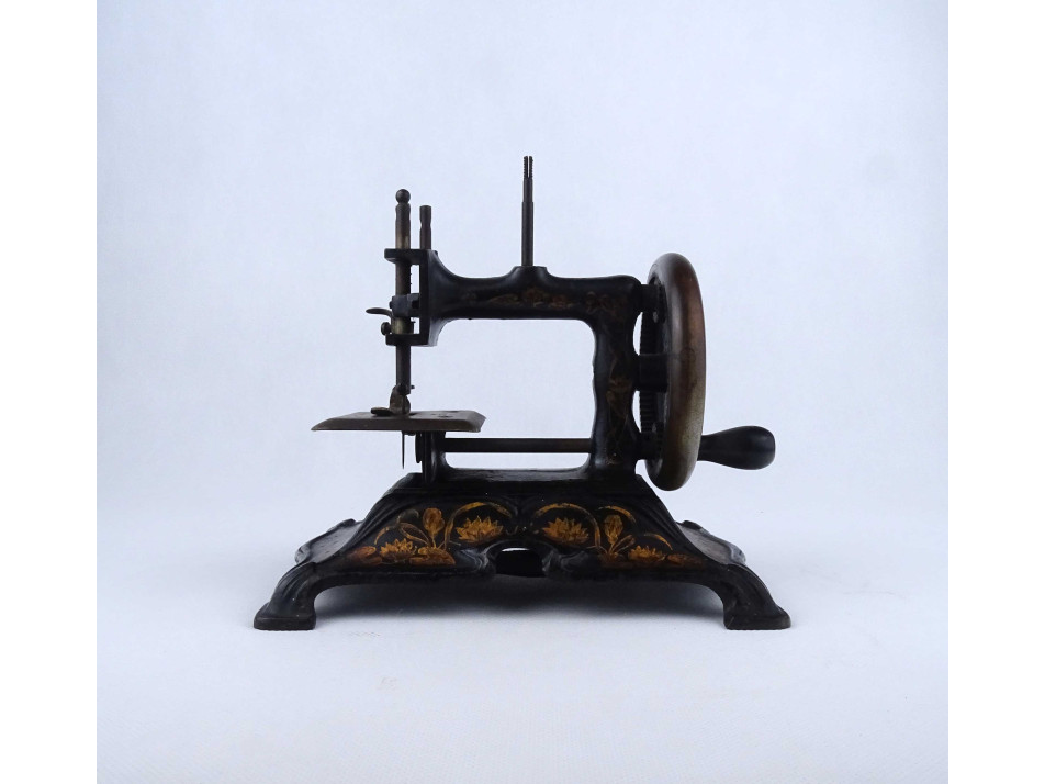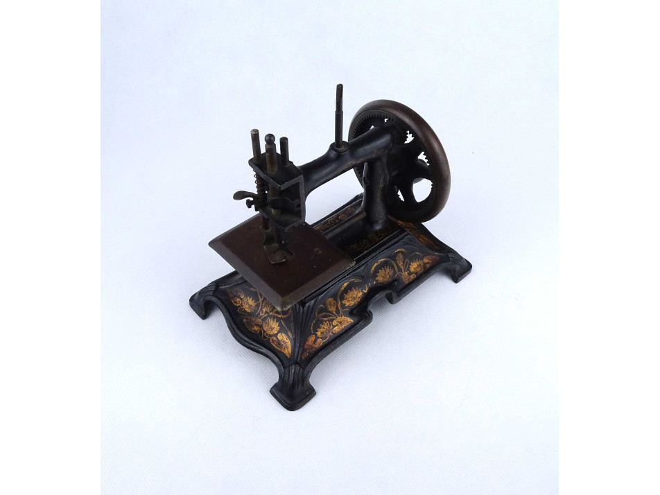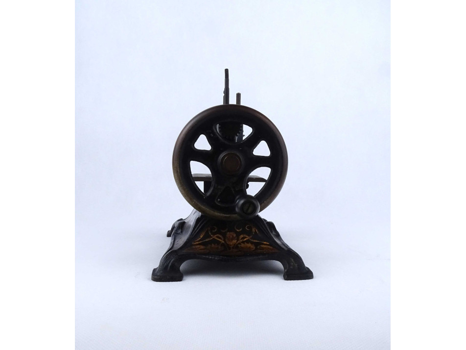 Antik mestermunka kisméretű öntöttvas varrógép 20 x 13 x 18 cm