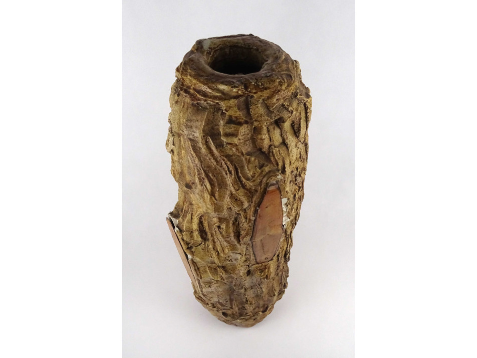Szép állapotú, nagyméretű, különleges, gipszből és fából készült, fatörzset formáló padlóváza, dekorációs tárgy.