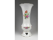 Nagy méretű, formatervezett modern művészi padlóváza, trombitaváza fából. Rajta aranyozott applikált díszítés.
