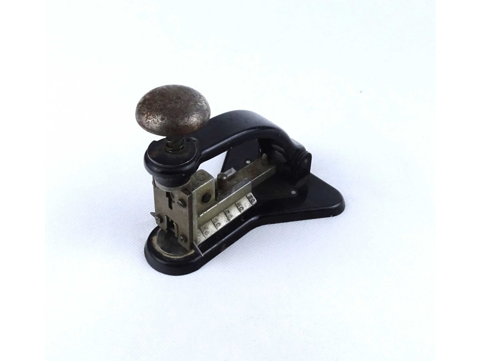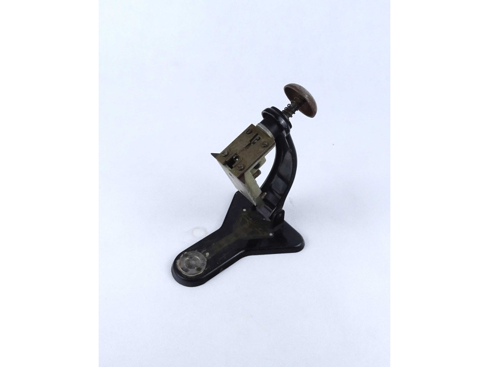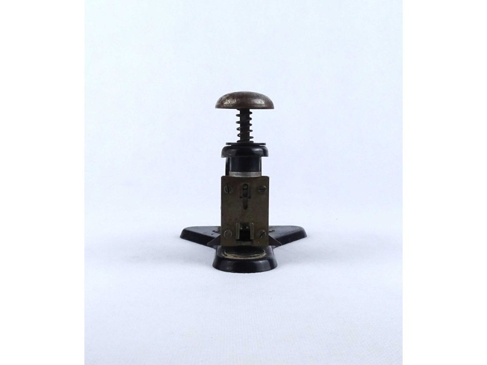 Nagyon régi, különleges íróasztali kellék, Studium asztali tűzőgép, működő állapotban. Különlegessége, hogy a tűzőrész a talpon 90° - ban elfordítható.