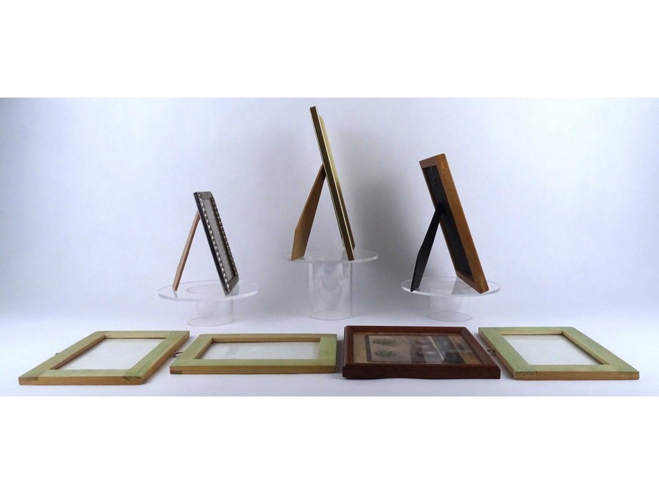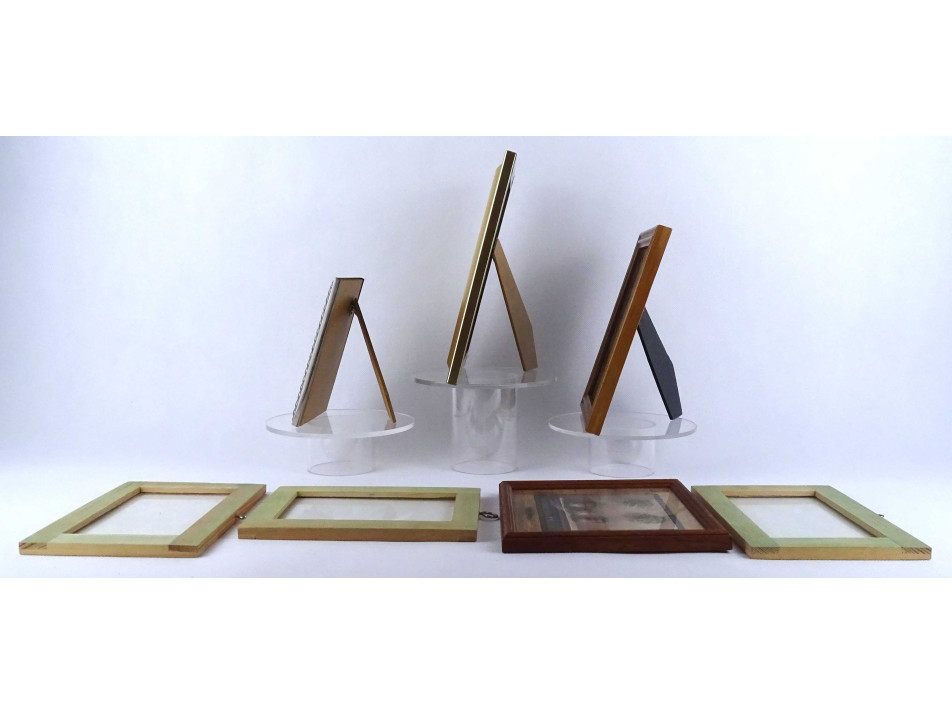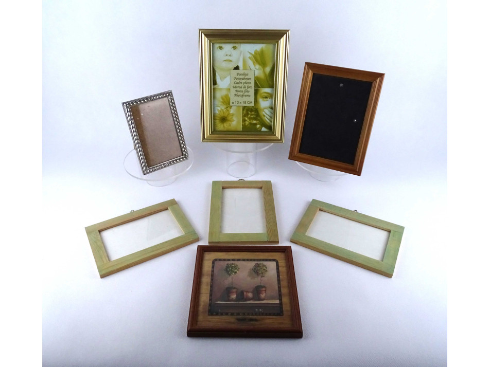 Régi, szép állapotú, vegyes, kisméretű képkeret, fotókeret csomag, 7 darab. A keretek anyaga, színe és mérete is különböző. Mindegyik keretben található üveglap.