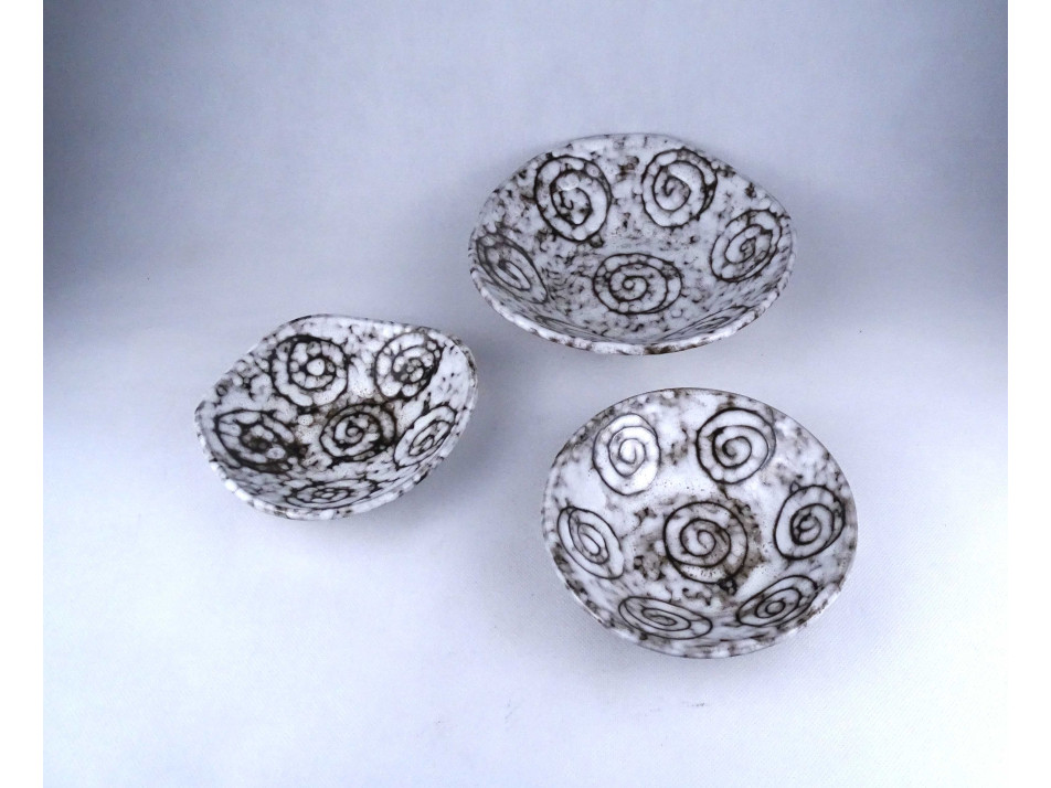 Retro fekete - fehér mázas csigás hódmezővásárhelyi kerámia tál csomag 3 darab