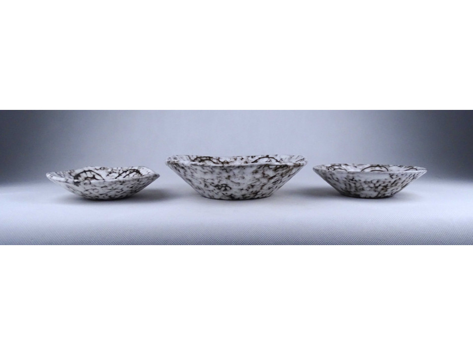 Retro, hibátlan állapotú, nagyméretű, fekete - fehér színű, márványos jellegű csigás mázzal díszített, jelzetlen hódmezővásárhelyi kerámia tál csomag, három darab egyben.