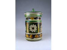 3 darab, szép állapotú, alma formájú, barna mázas kerámia tároló tetővel. Az egyik tető szélén lepattanás látható.