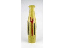 Hibátlan állapotú, narancsszínű, csorgatott mázas füles díszváza, kerámia váza. Iparművészeti darab. Felső része restaurált.