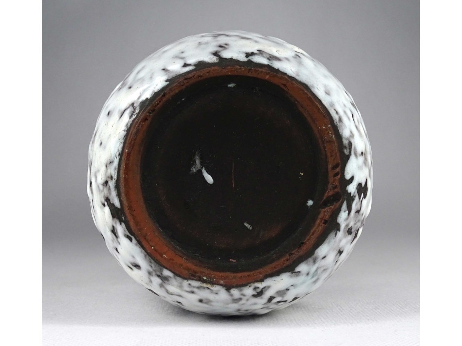 Retro, hibátlan állapotú, nagyméretű, fekete - fehér színű, márványos jellegű, jelzetlen mid century kerámia design váza, virágváza, díszváza.