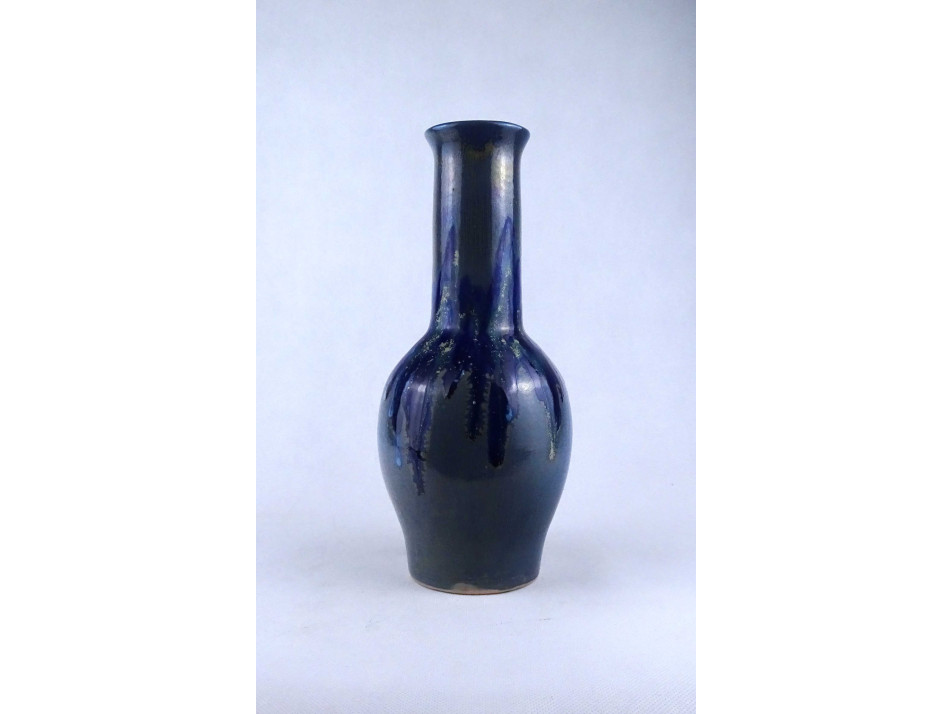Retro, hibátlan állapotú jelzetlen iparművészeti, csurgatott, kék - szürke mázas kerámia váza, díszváza.