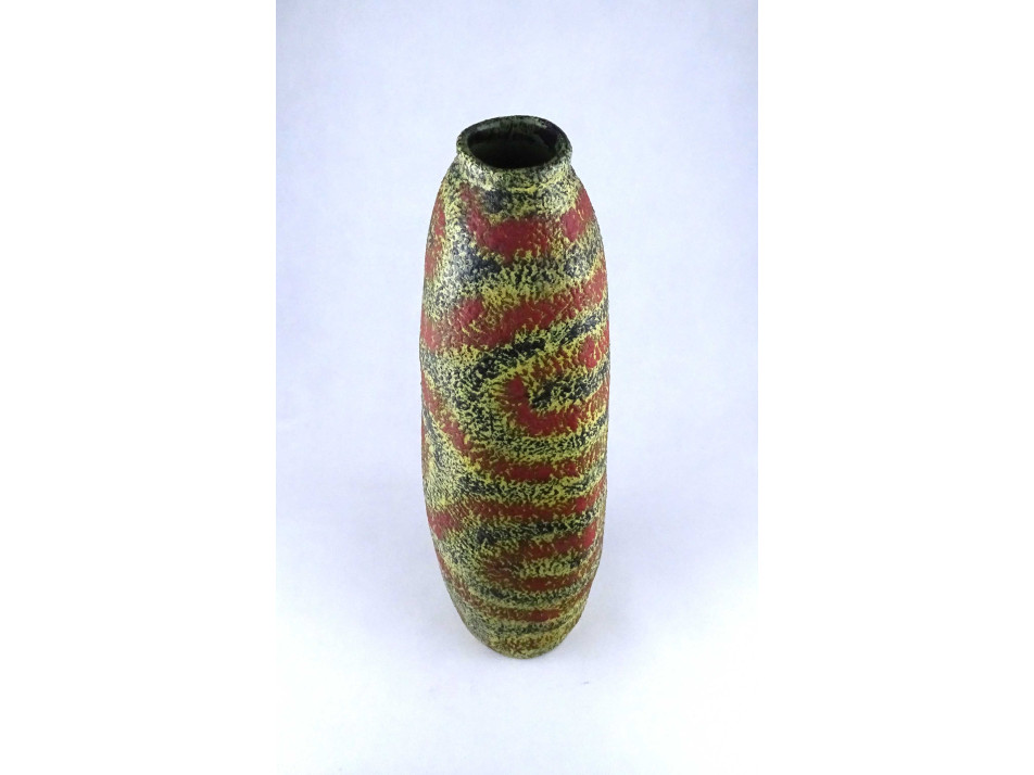 Retro Pesthidegkút sárga zöld piros mázas kerámia padlóváza 48.5 cm