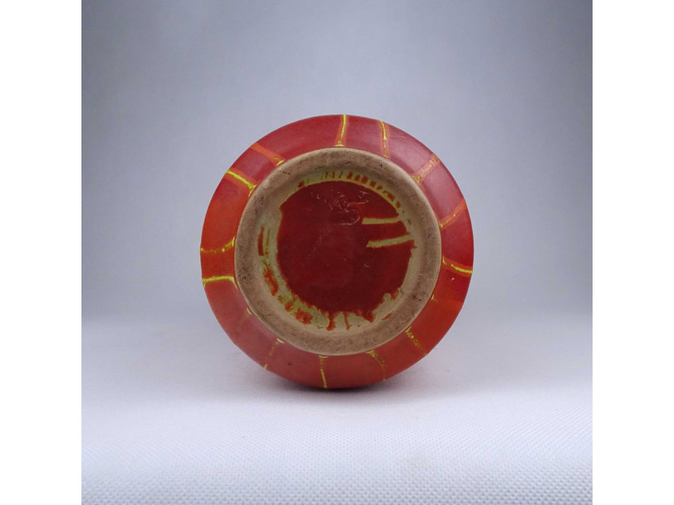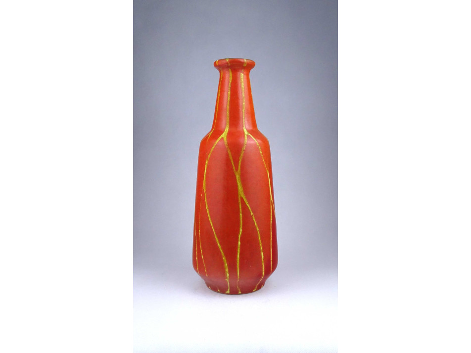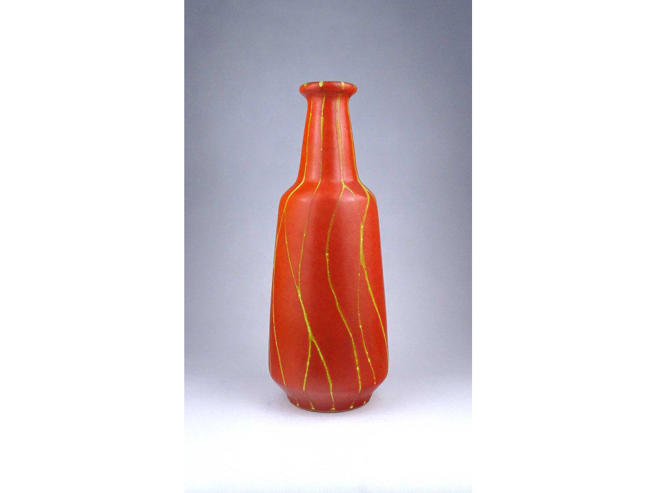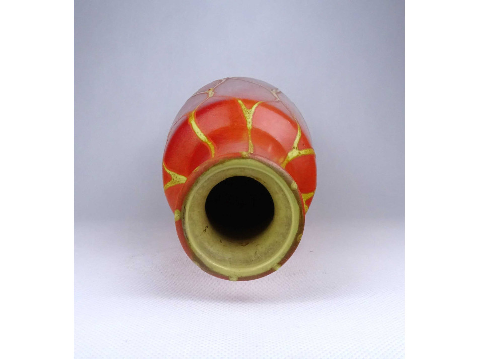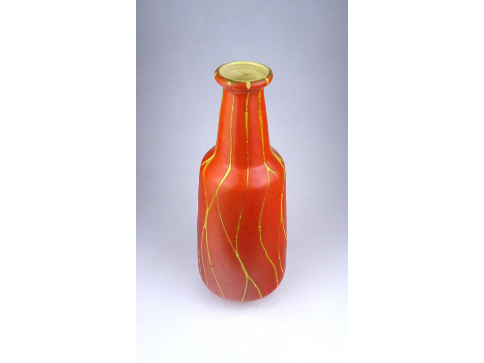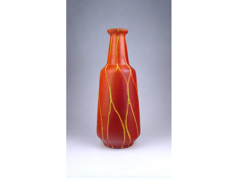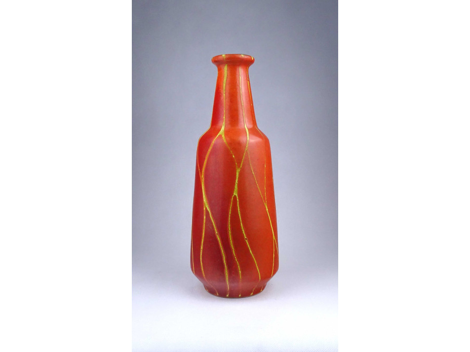 „Az a bizonyos narancsos szín egy nagyon speciális fritt receptúra sajátsága, az instabil ólomkromát tartalom miatt a felviteli és égetési körülményektől függően homogén vörös, vagy kristályos vörös szín, illetve az égetési atmoszférától függően krómzöld szín is előtűnik. (…) A kékes, szürkés és a grafit szín szintén jellemző, a rézoxid, kobaltoxid színezőanyagok alkalmazására utal.”[9]