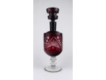 Régi, bordó, talpas, csiszolt, dugós üveg, likőrös palack 31.4 cm