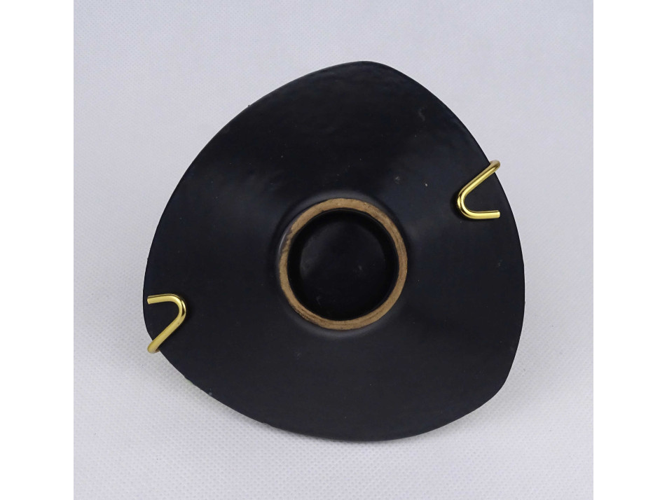 Retro, háromszög alakú, jelzetlen, zöld mázas, réz fogantyús kerámia kis tál, hamutál.