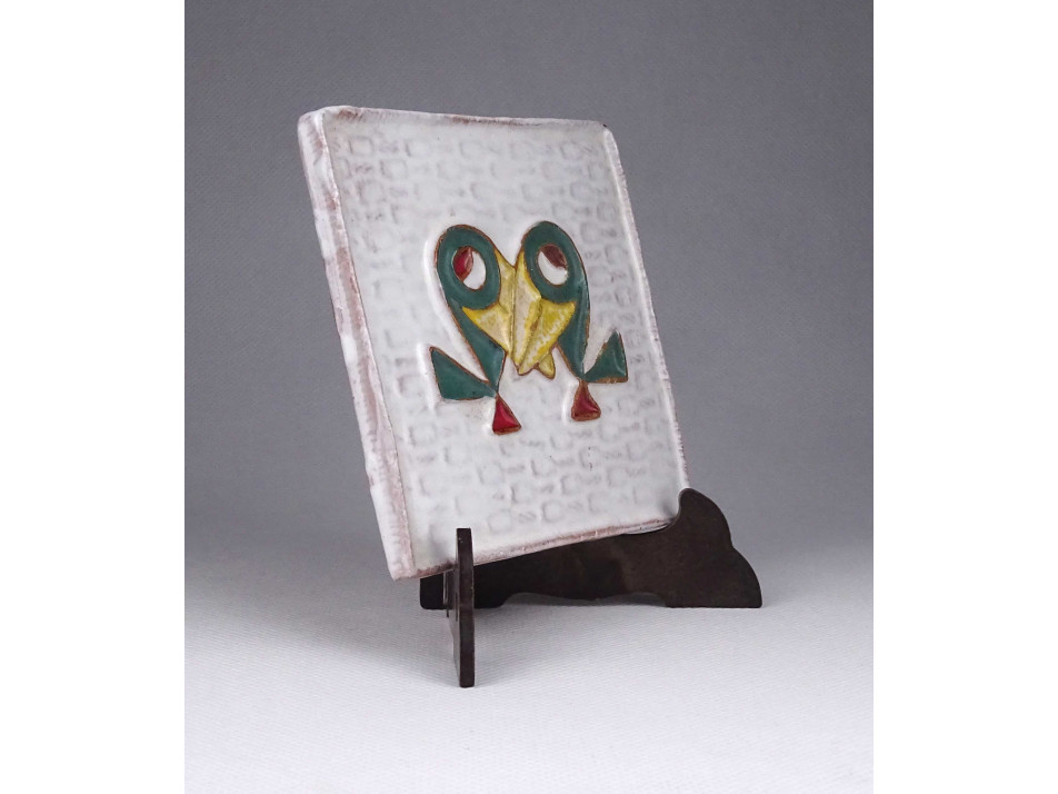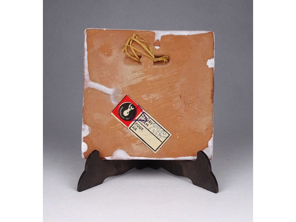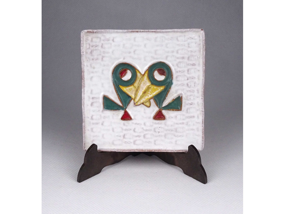 Retro hollós iparművészeti kerámia falidísz, falikép 10.2 x 10.2 cm