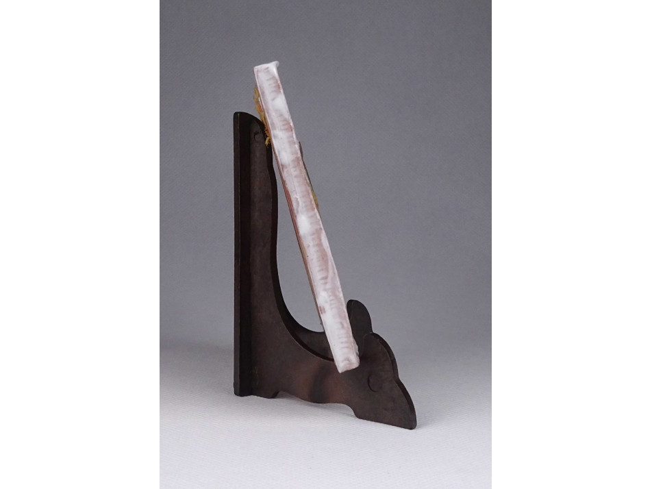 A plakett peremén hátulról egy apró lepattanás található. Ez szemből nézve, illetve falra akasztva egyáltalán nem látható.
