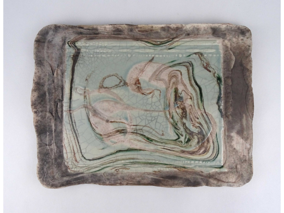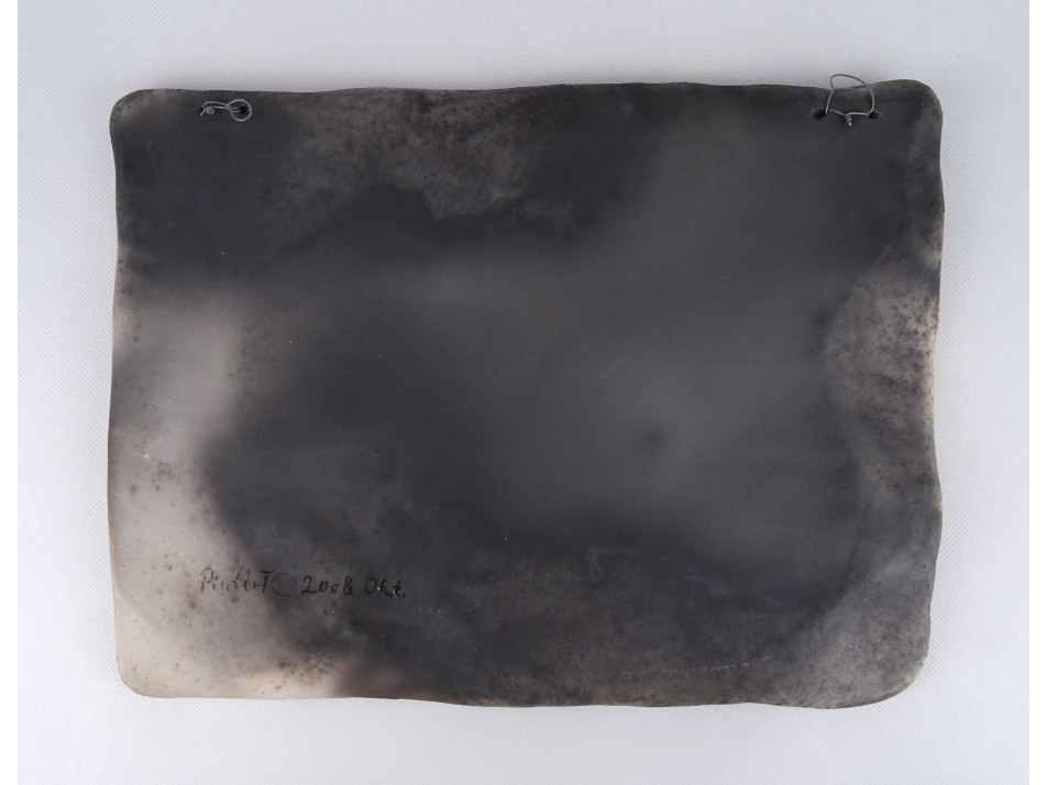 Hibátlan állapotú, jelzett, akasztási lehetőséggel rendelkező, mázas kerámia kép, falidísz, fali kerámia.