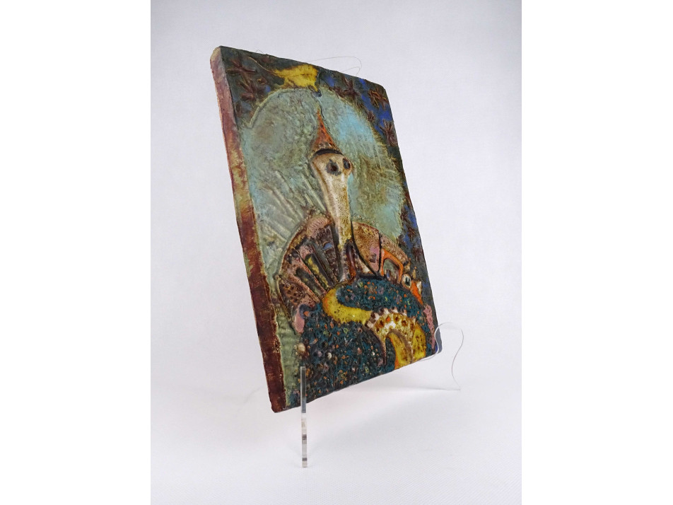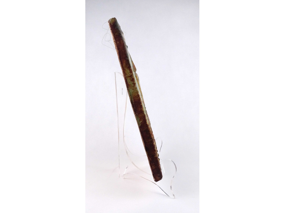 Jelzett, hibátlan állapotú iparművészeti alkotás, mázas samott fali kerámia, díszkerámia. Városkaput, kaputornyot ábrázoló falikép. Falra akasztási lehetőséggel rendelkezik.