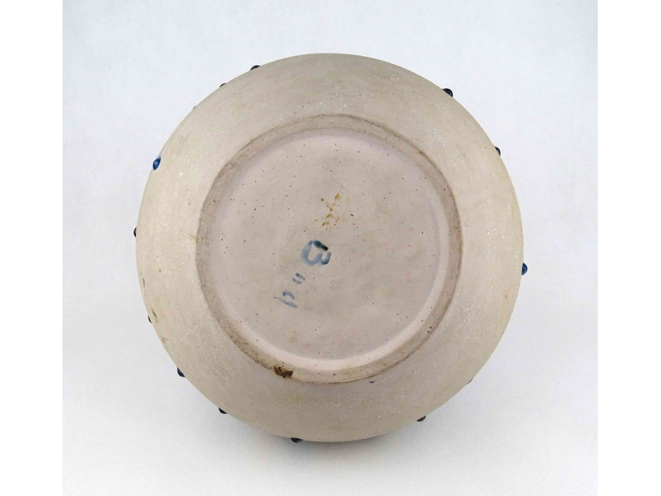 Hibátlan állapotú, jelzett Bod Éva iparművészeti tárgy, öblös, részben mázazott, kék színű mid century kerámia váza. Alján festett jelzés: BOD