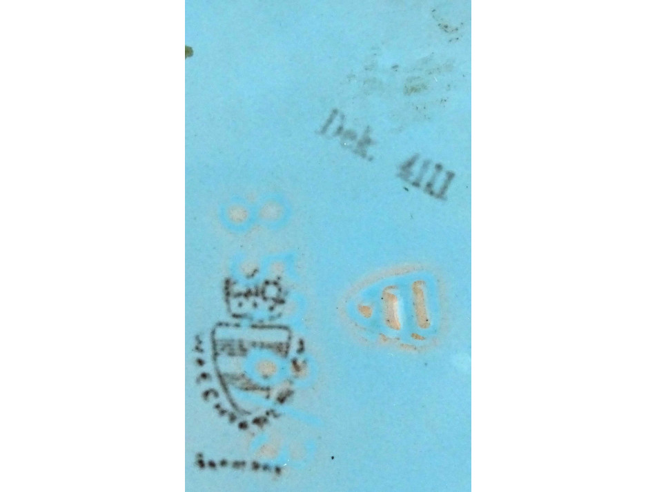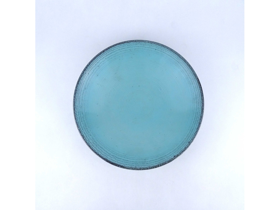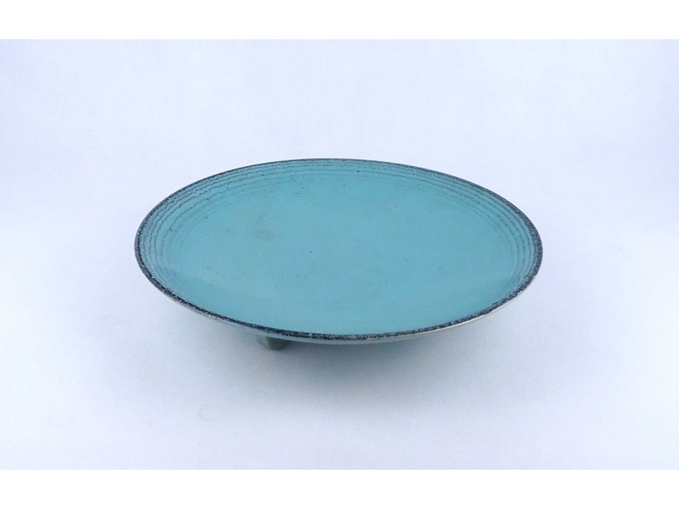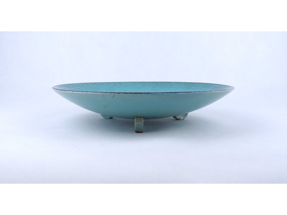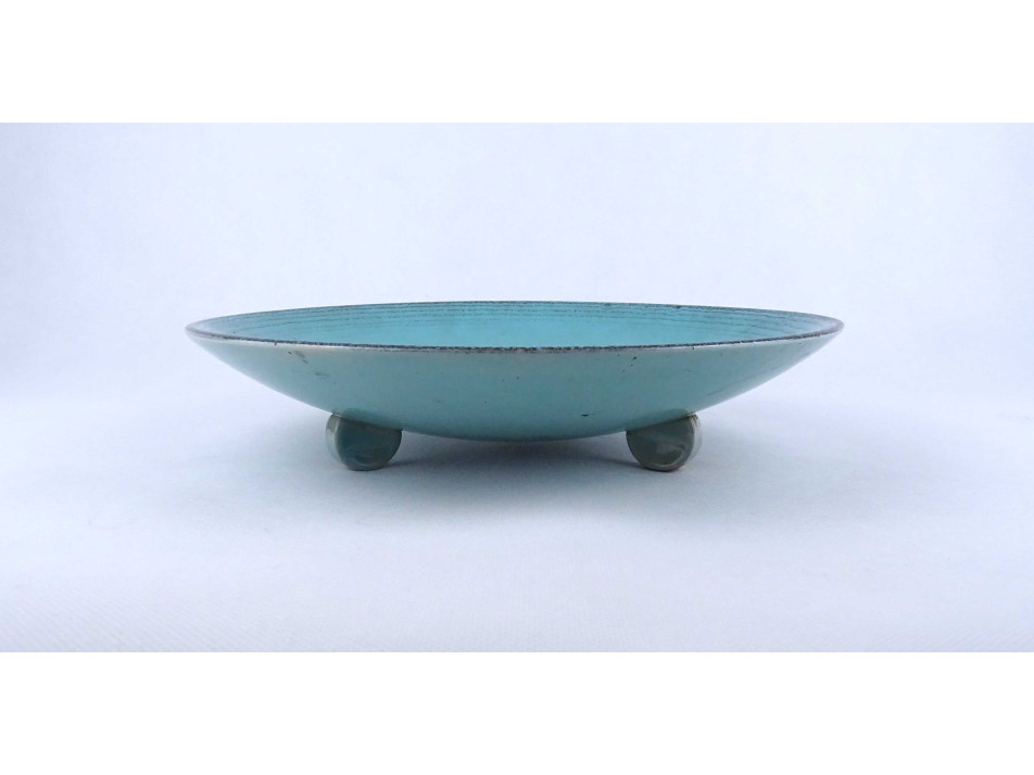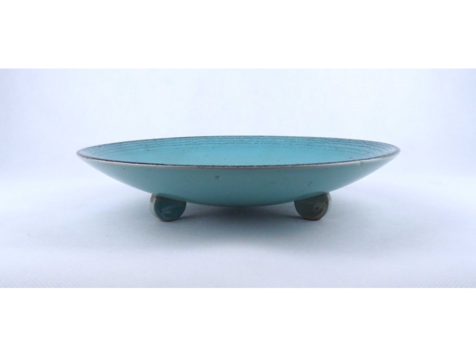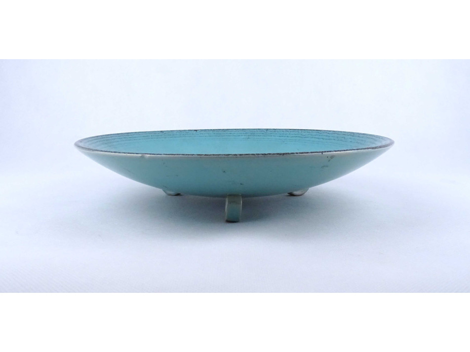 Régi, hibátlan állapotú, türkizkék színű spirális mintával díszített három lábon álló art deco Waechtersbach kerámia tál.