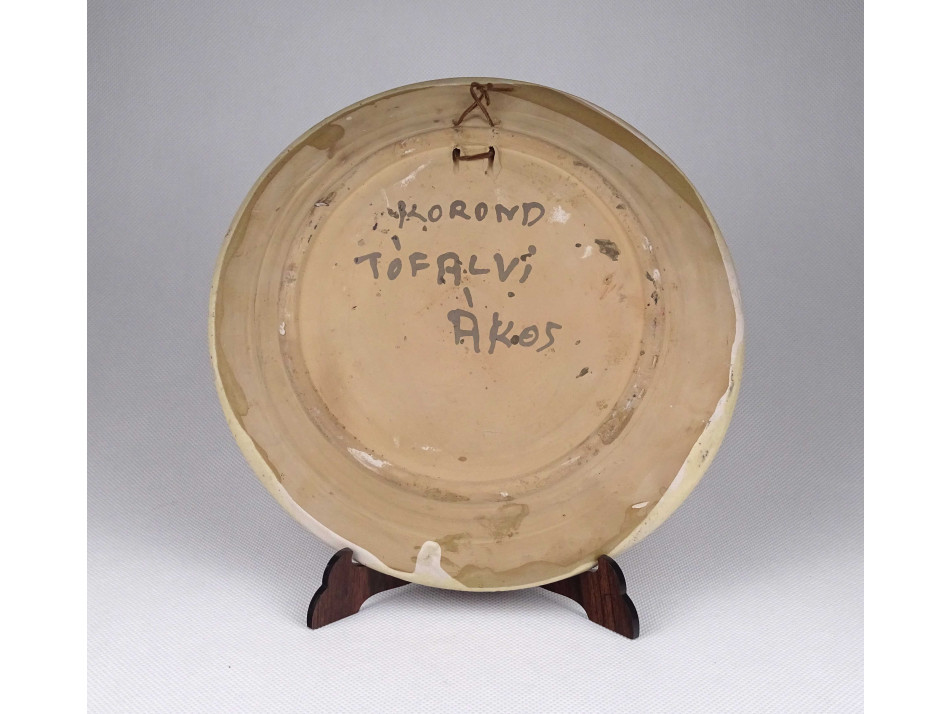 Régi piros madaras Korondi Tófalvi Ákos cseréptál 22 cm