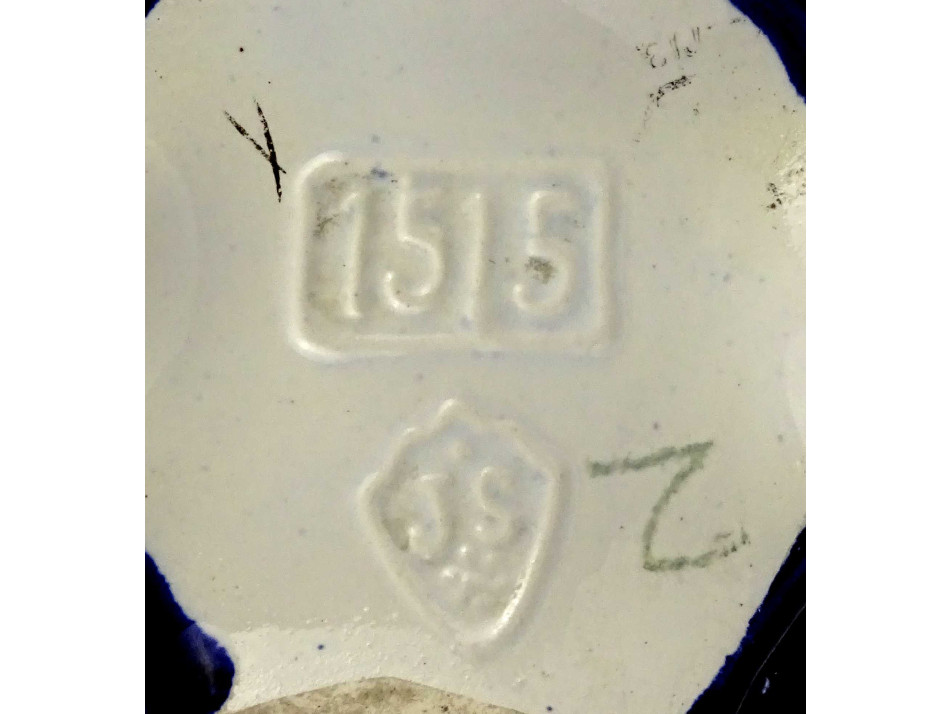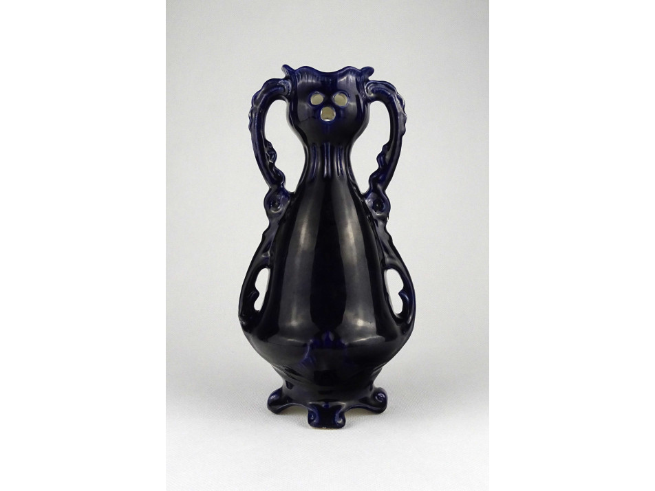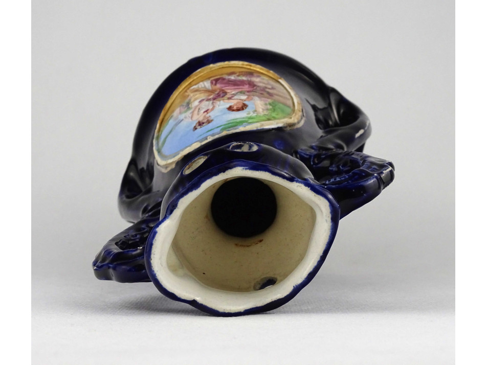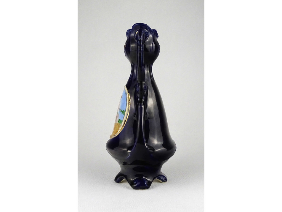 Régi kobaltkék, jelenetes, majolika váza 24.8 cm