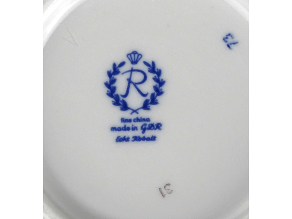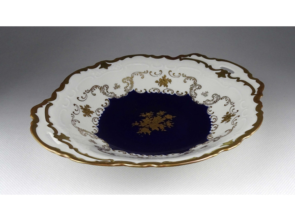 Aranyozott peremű kobaltkék Reichenbach porcelán asztalközép kínáló tál 24 cm