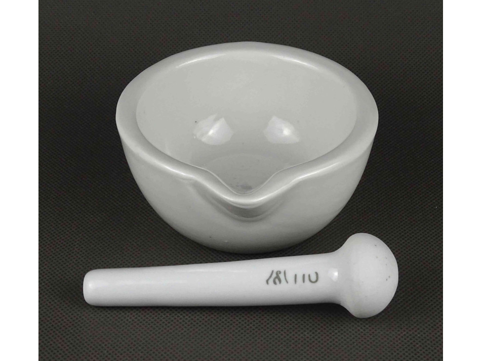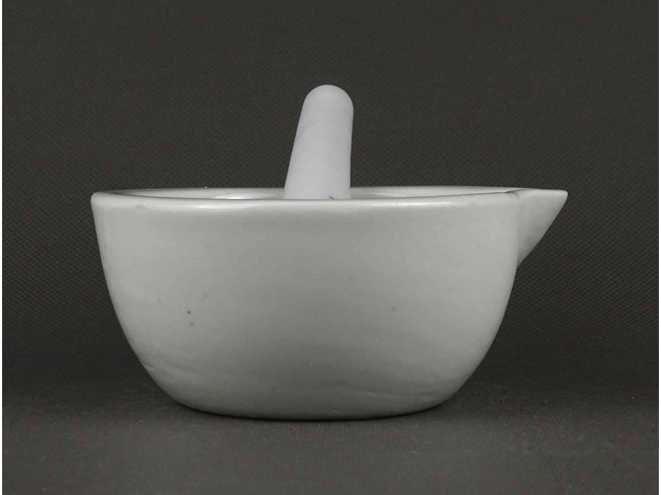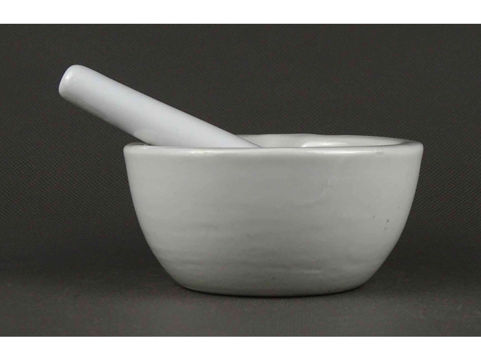 Antik, hibátlan állapotú, kisméretű, jelzett, fehér színű, porcelán mozsár törővel.