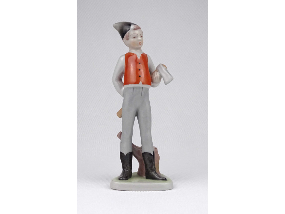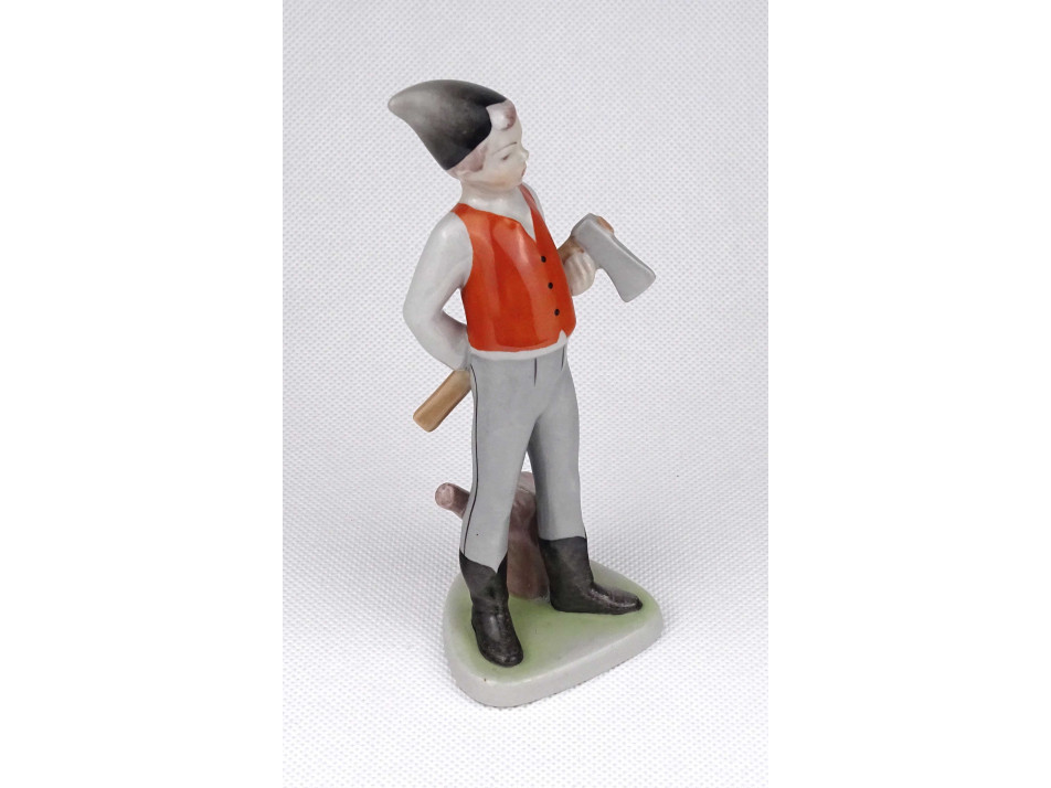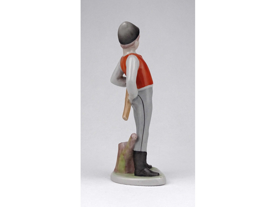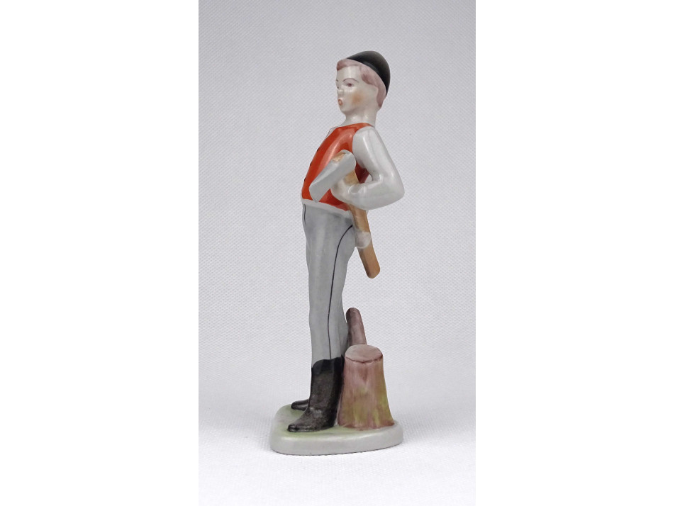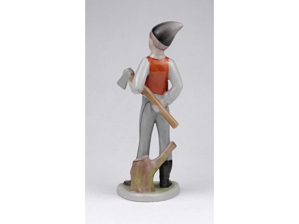Hibátlan állapotú, kézi festéssel díszített favágó fiú szobra. Kezében balta, fejsze. Alján Drasche márkajelzés és felirat: KÉZIFESTÉS