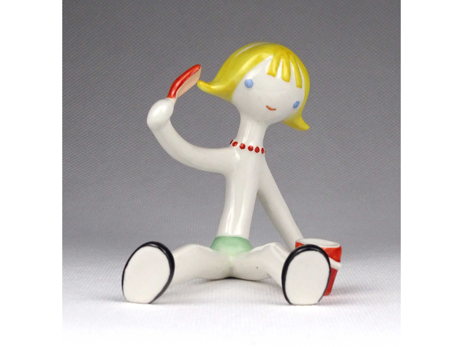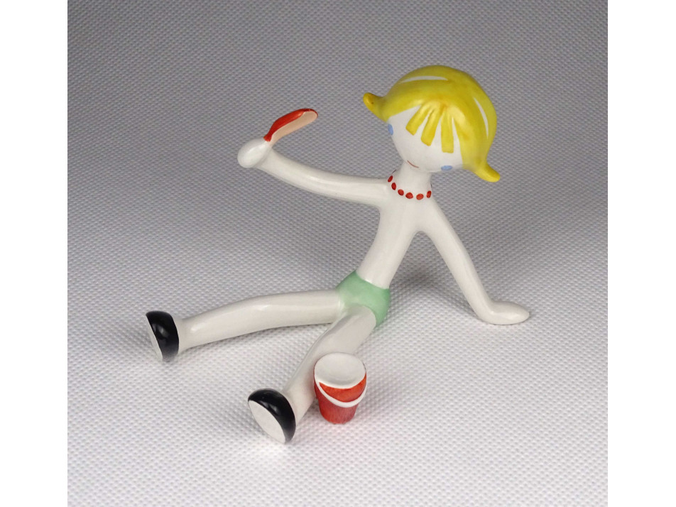 Régi homokozó kislány Aquincum porcelán figura