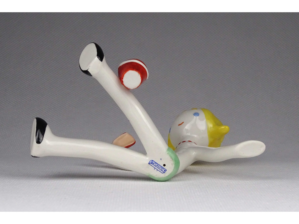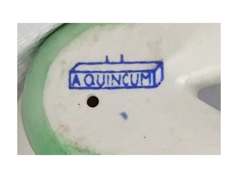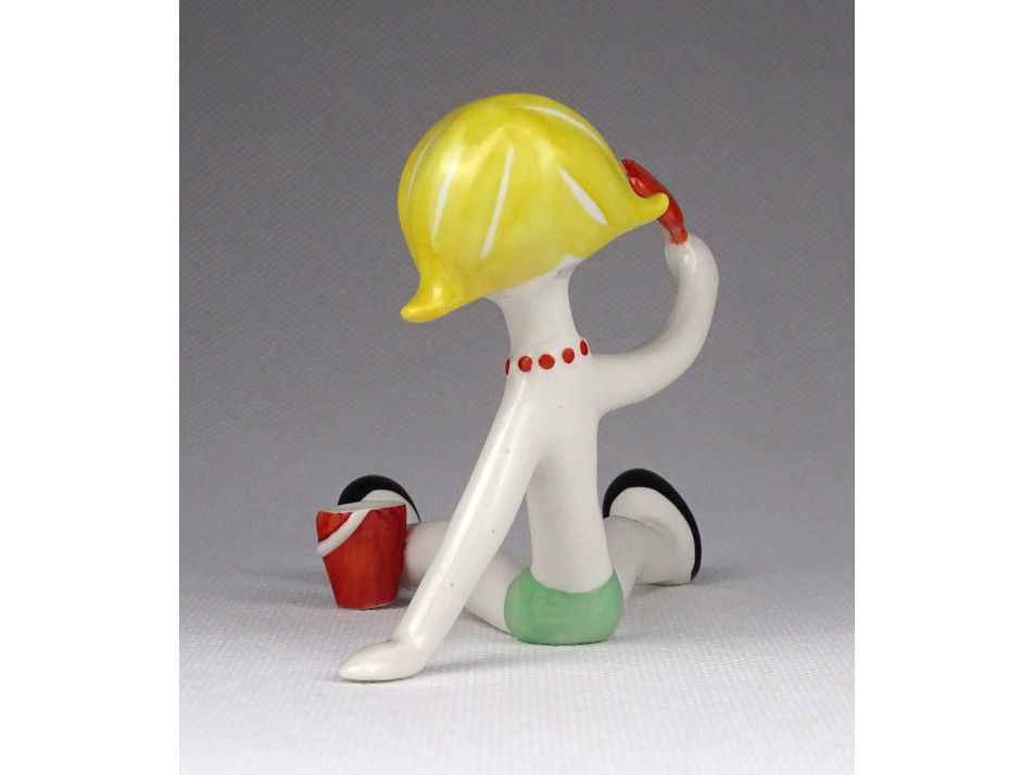 Régi, hibátlan állapotú, jelzett, Aquincum porcelán figura, homokozó kislány figura. Alján kék márkajelzés: AQUINCUM