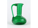 Méregzöld színű, repesztett kraklé fújtüveg kiöntő 13.5 cm