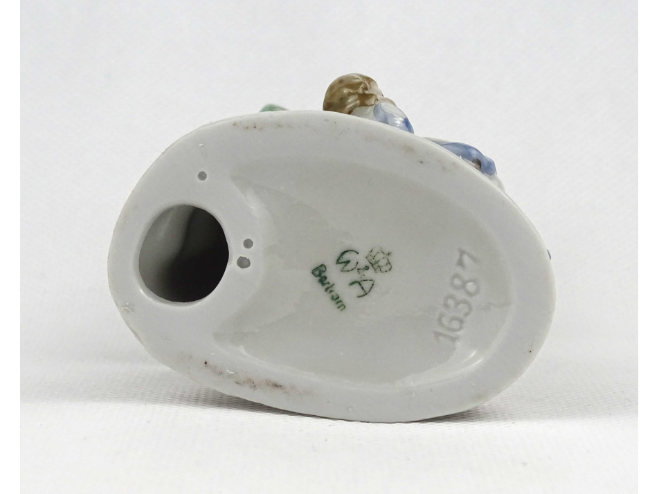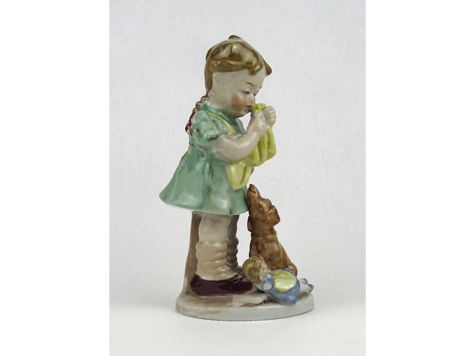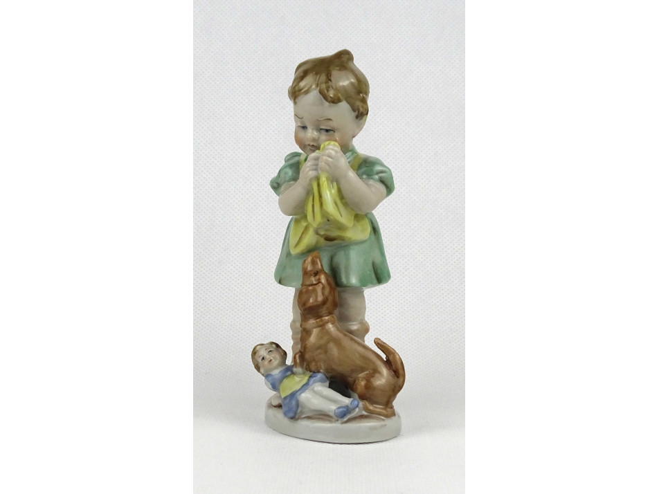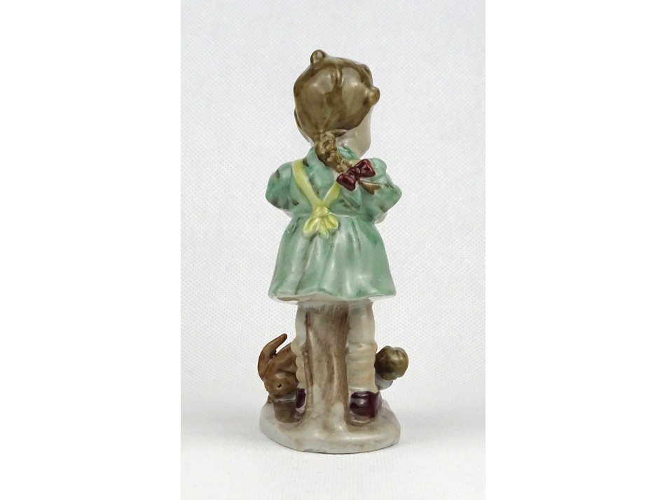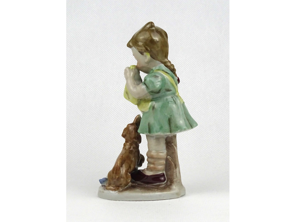 Régi német Bertram porcelán figura kislány kutyával 13 cm
